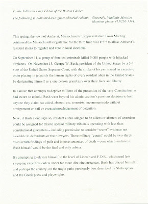 Here is an excerpt from the letter that Town Meeting member Jim Oldham had published in the Amherst Bulletin: