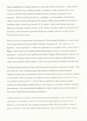 The following posts document more than twelve years of dedicated political leadership from Vladimir Morales on issues important to the community of Amherst.